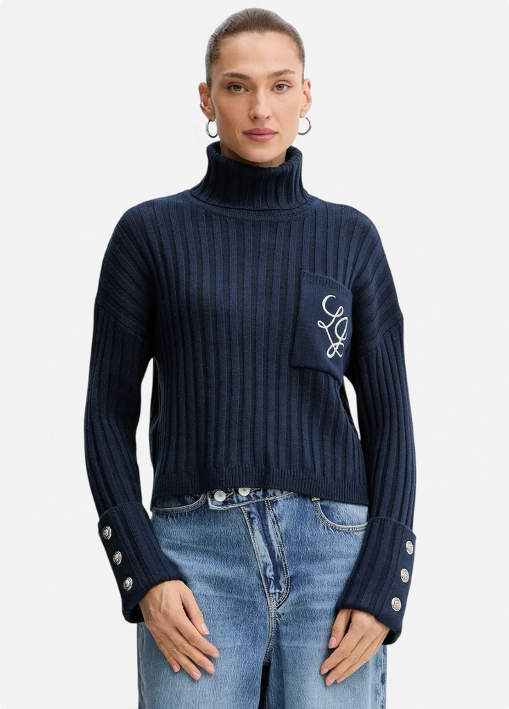RIB KNIT SPARKLE TURTLENECK BEIGE