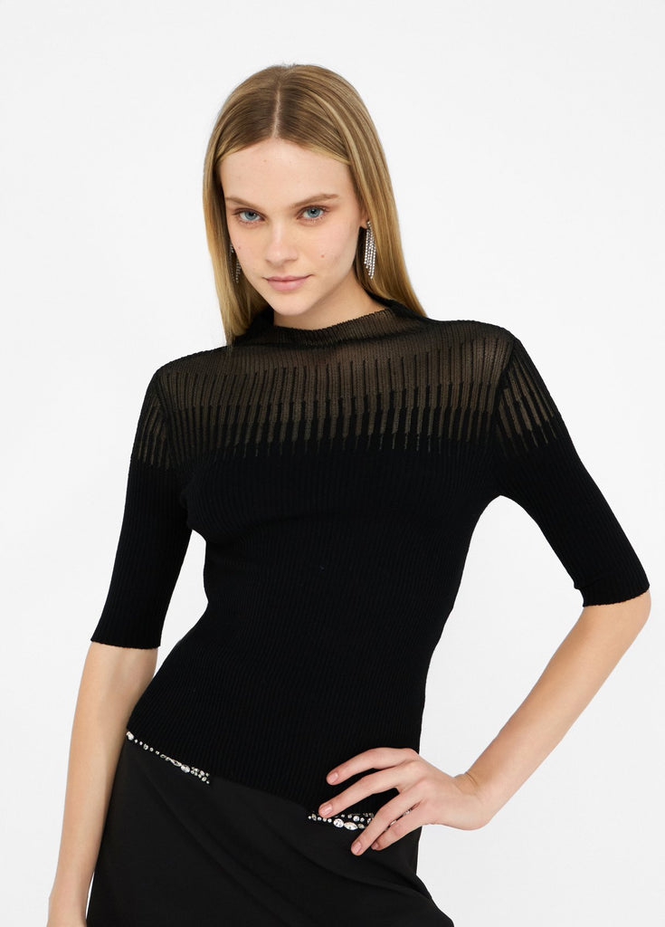 KNIT TOP WITH MICRO SEQUINS DARK BROWN