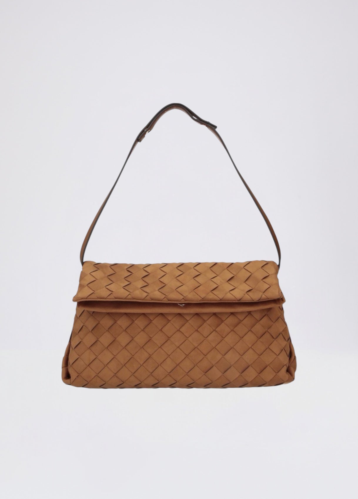 Essential, textured, this Riccy Bag captivates with its soft woven design that gives the surface a refined sense of movement. Bold side details catch the light like small sculptural accents. Wear it on the shoulder or as a clutch for your most polished looks.