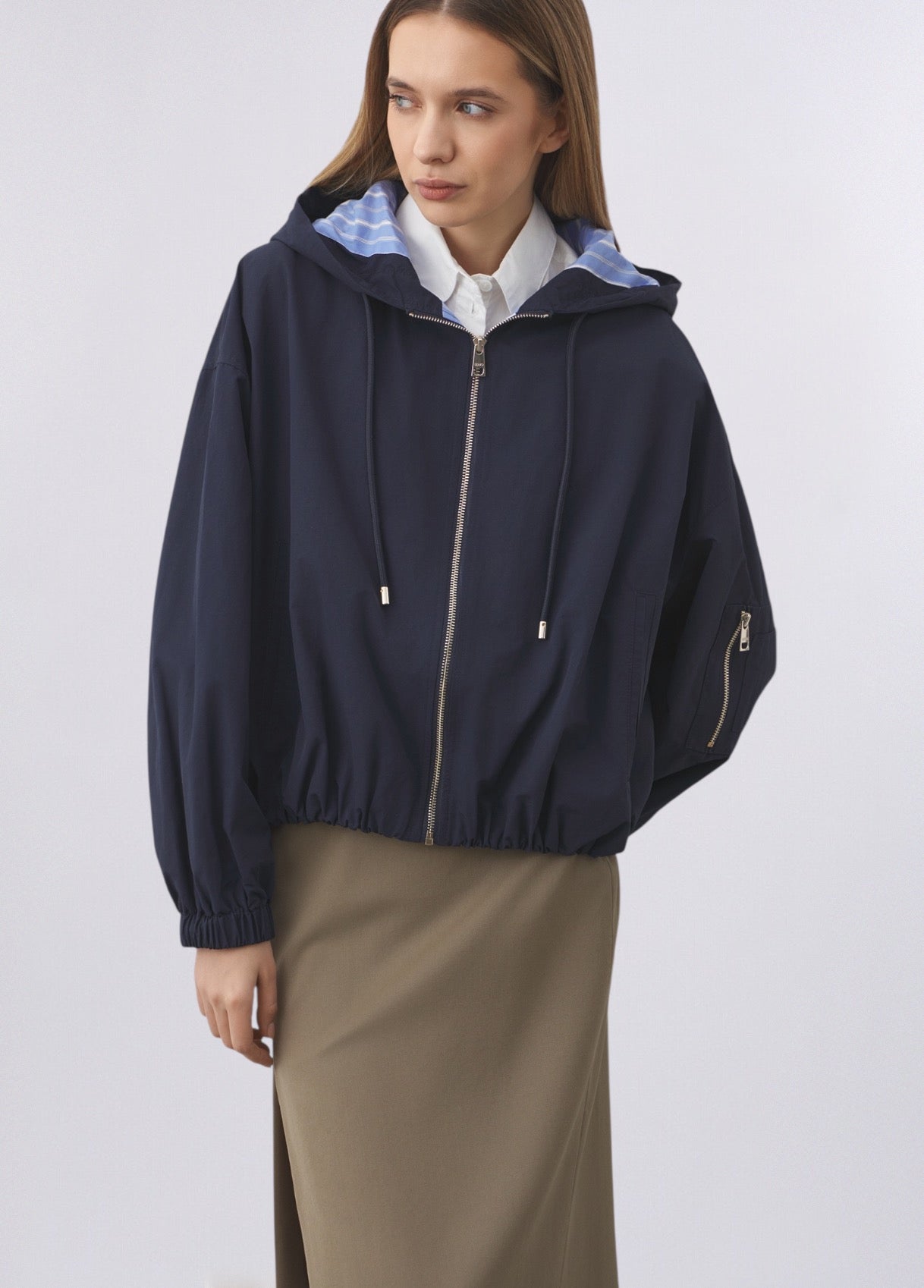 CROPPED RAIN JACKET DARK BLUE