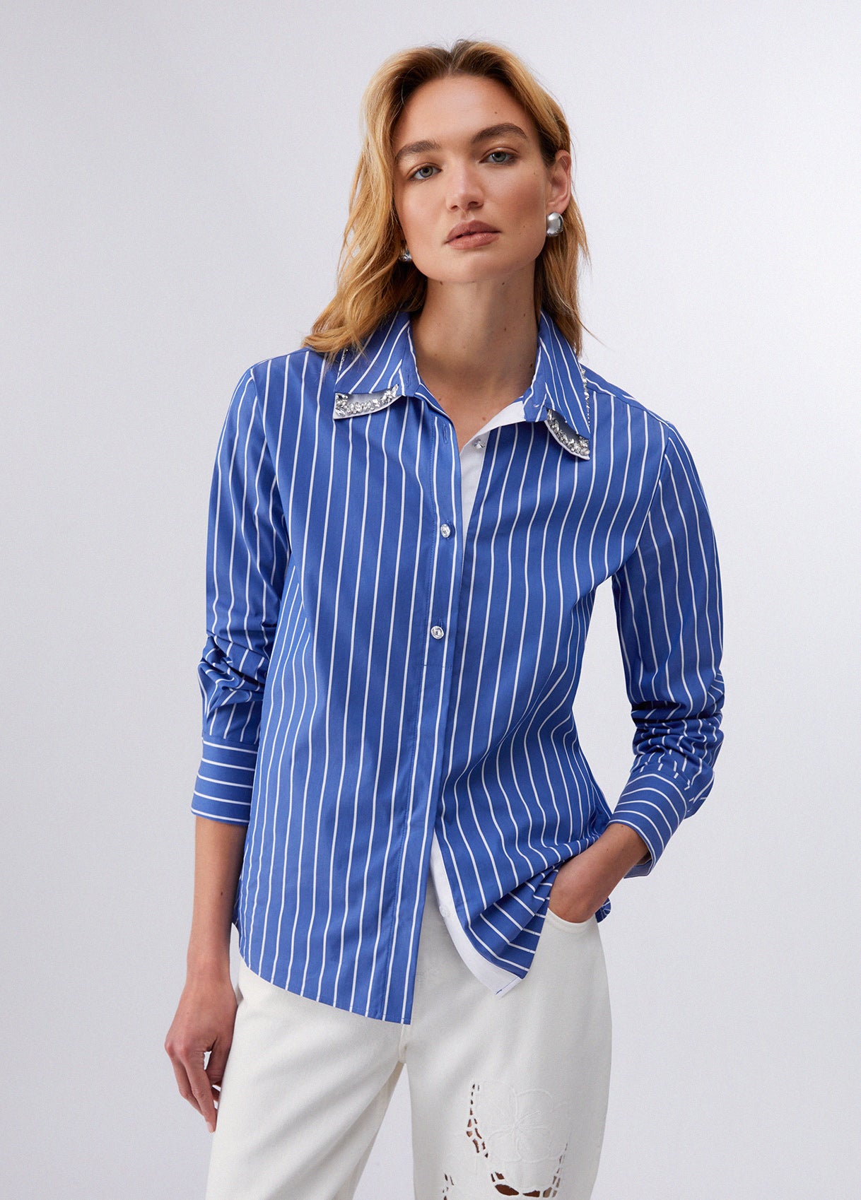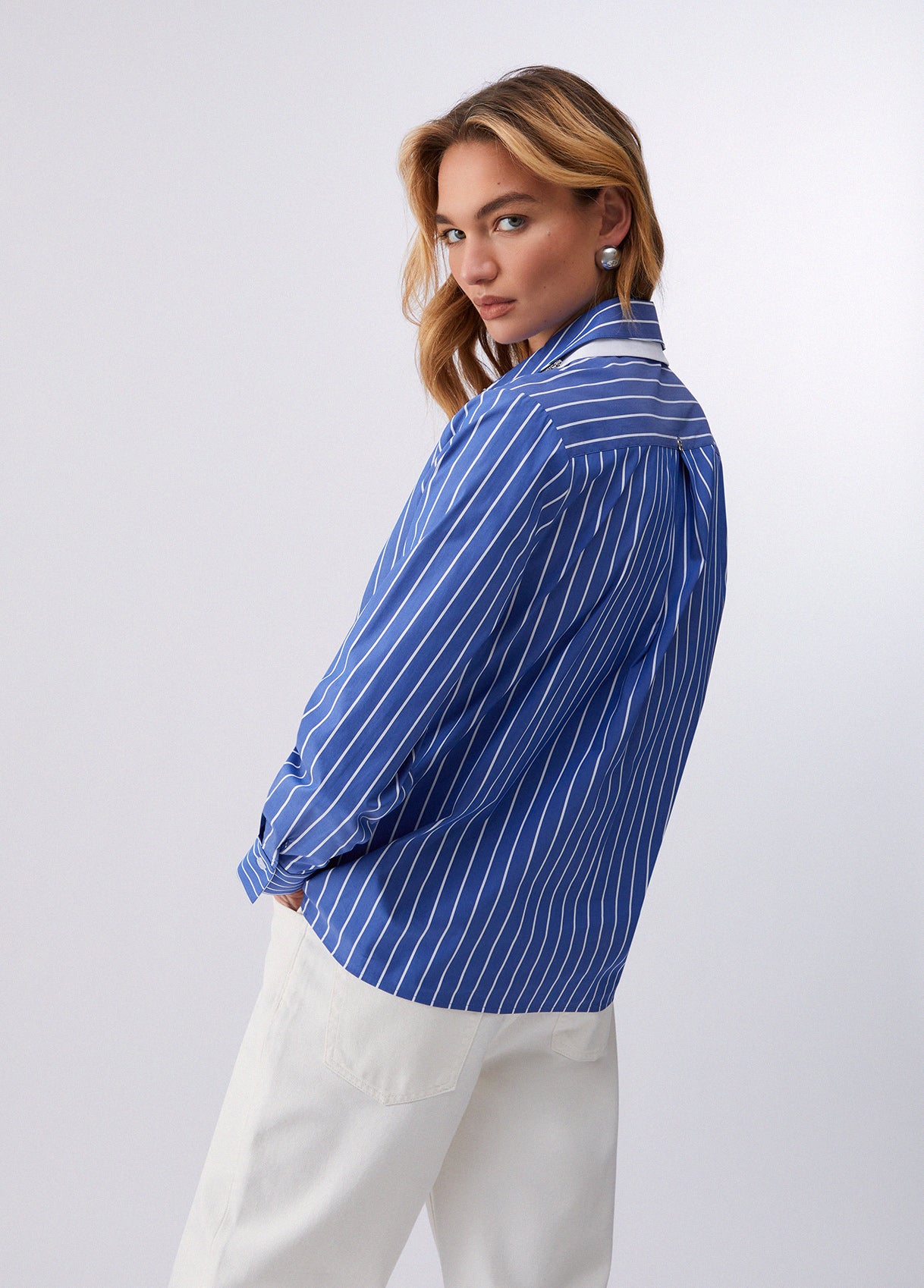 DETACHABLE COLLAR STRIPED SHIRT BLUE/WHITE