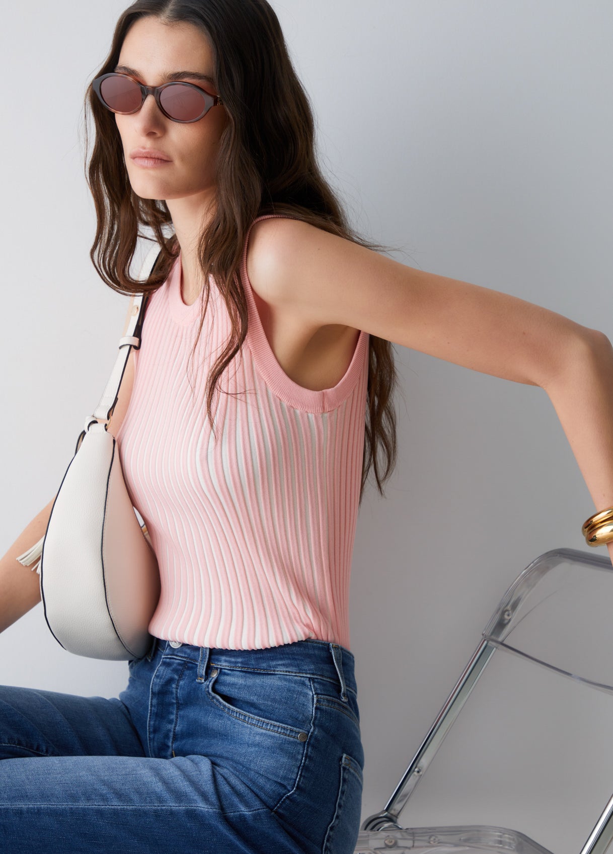 • Pink knit top