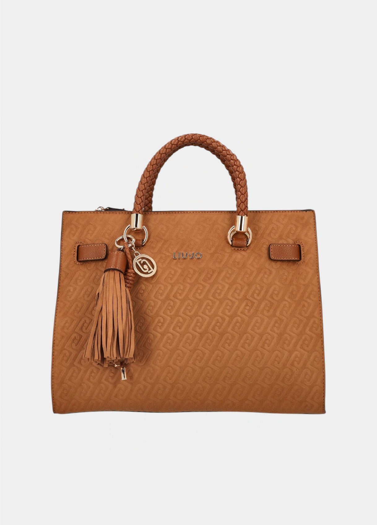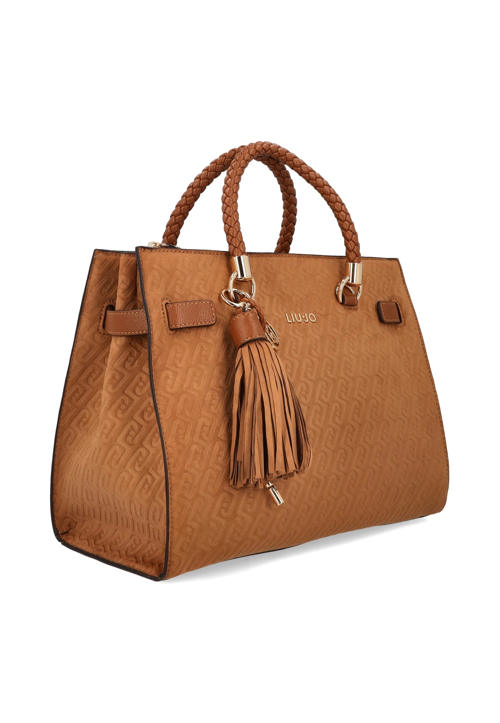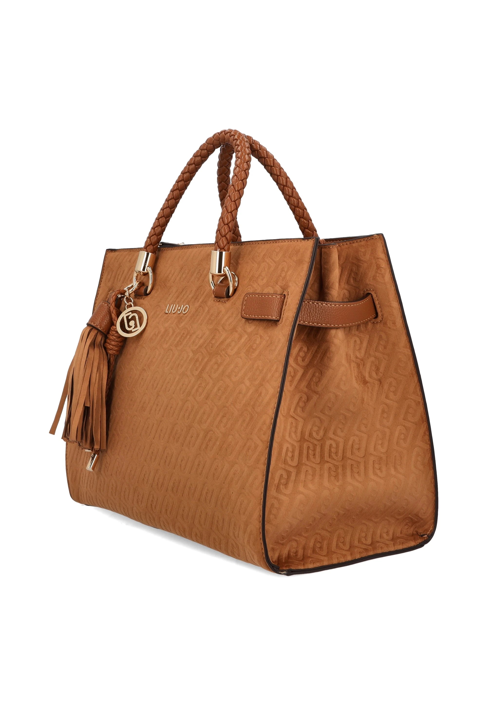 Suede Effect Monogram Tote Bag Camel