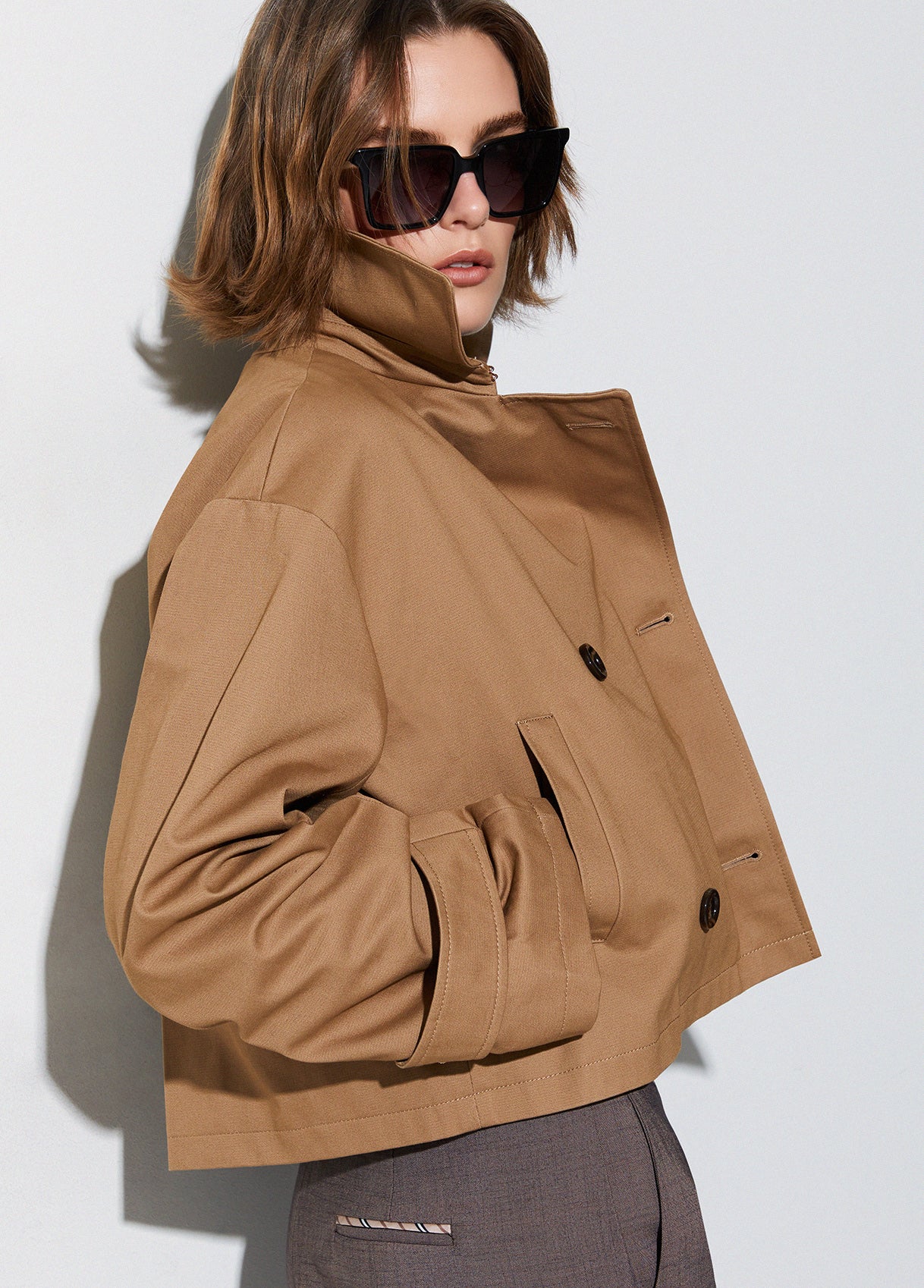 CROPPED TRENCH COAT CAMEL
